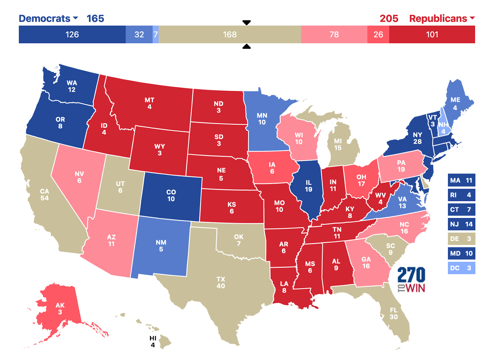As shown in the 270 to Win website map below, the 9 states where Kennedy is officially on the ballot represent 168 electoral votes.