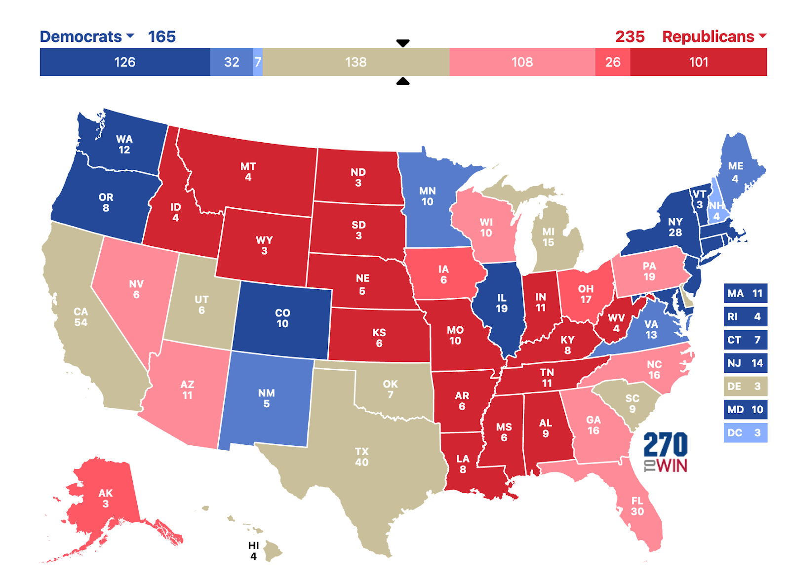 In total, these 21 states represent 292 electoral votes. Kennedy is eligible for 138 electoral votes in the eight states where he is officially on the ballot.