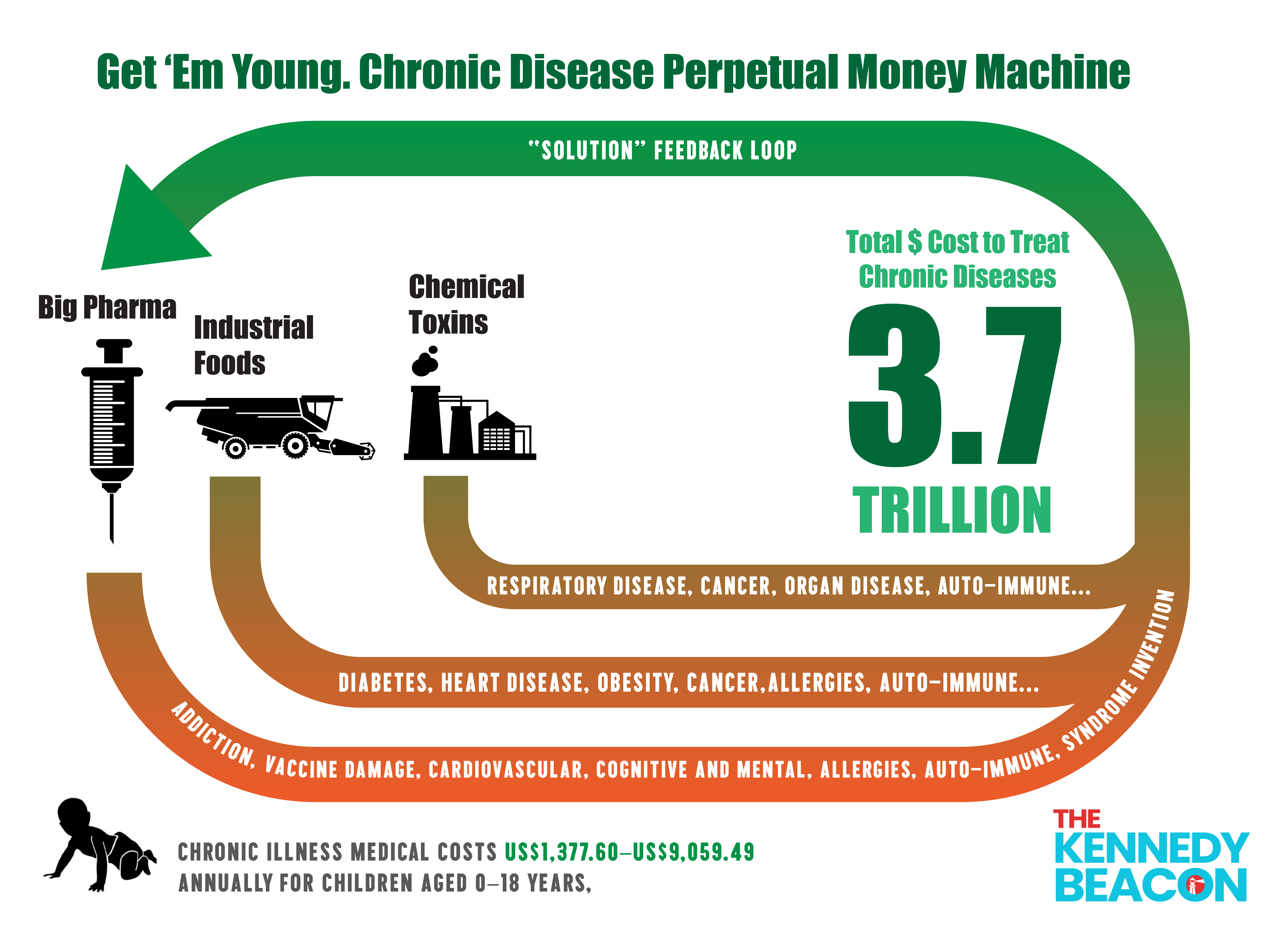 Unfazed by the profit-driven connection between how unhealthy food creates the need for (overpriced) healthcare and drugs, Kennedy will drill down on the major driver of healthcare costs, and more specifically, Medicare. The amount spent on the nation’s chronic disease epidemic is more than a trillion dollars a year and accounts for at least 93% of the Medicare budget.