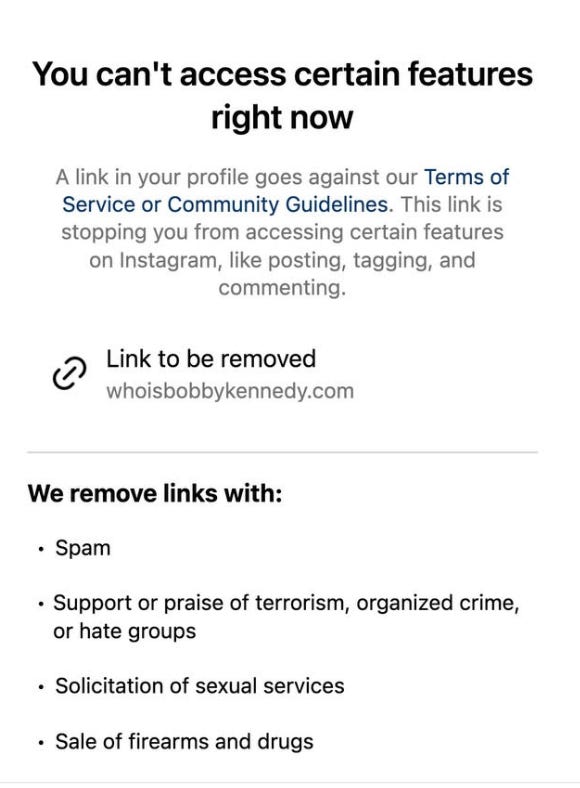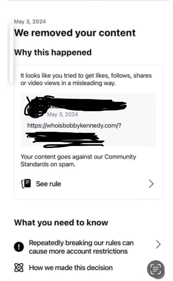 A 30-minute film produced in association with American Values 2024, the super PAC supporting Robert F. Kennedy Jr. for President, has been censored by Meta, owner of Facebook and Instagram.